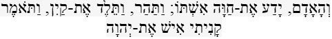 “And the man knew Eve his wife; and she conceived and bore Cain, and said: ‘I have gotten a man with the help of the LORD.” Bereshit - Genesis 4:1. (JPS).